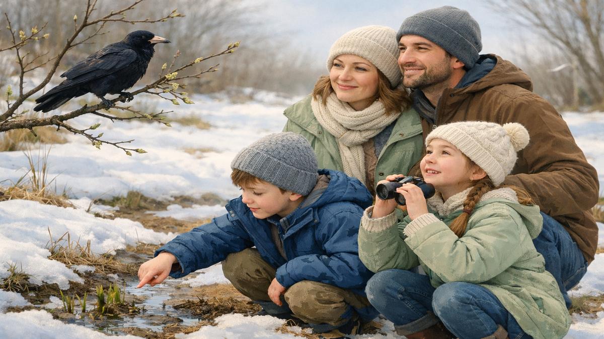 - «Весенний детектив» на прогулке. Отправляйтесь всей семьей на поиски первых признаков весны: проталин, набухающих почек на деревьях, птичьих следов на снегу. Возьмите блокнот и карандаши, чтобы зарисовывать свои наблюдения. Это занятие развивает внимательность и любовь к природе у детей любого возраста.