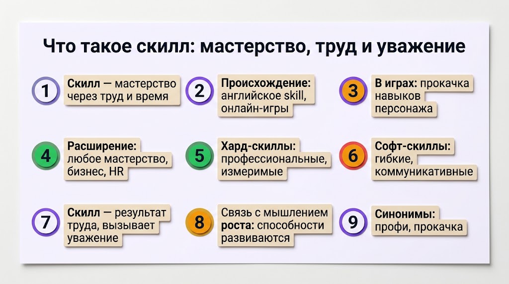 Изначально «скилл» означал не просто умение, а мастерство, которое достигается упорным трудом и временем. Это не врождённый талант, а результат множества усилий. И именно это делает его таким ценным.