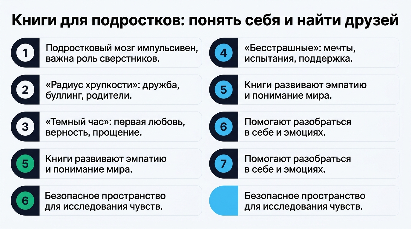 Эти книги — не просто увлекательные истории, но и ценные помощники для подростков. Они показывают, что сложности взросления — это нормально, и что важно искать поддержку, учиться прощать и быть верным себе и своим друзьям.