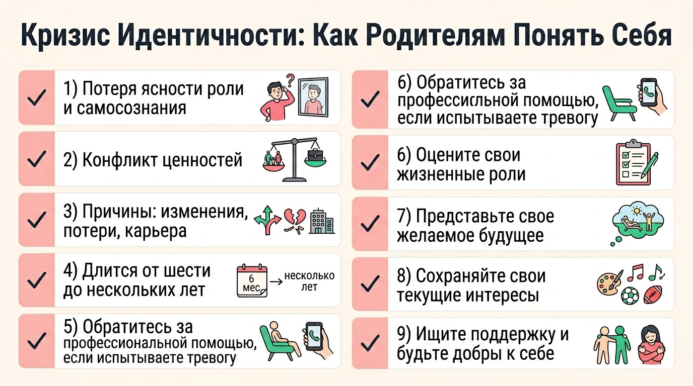 Кризис идентичности — это возможность для роста и переосмысления. Он помогает нам стать более осознанными и верными себе. Примите этот период как шанс узнать себя лучше и построить жизнь, которая по-настоящему вам подходит.