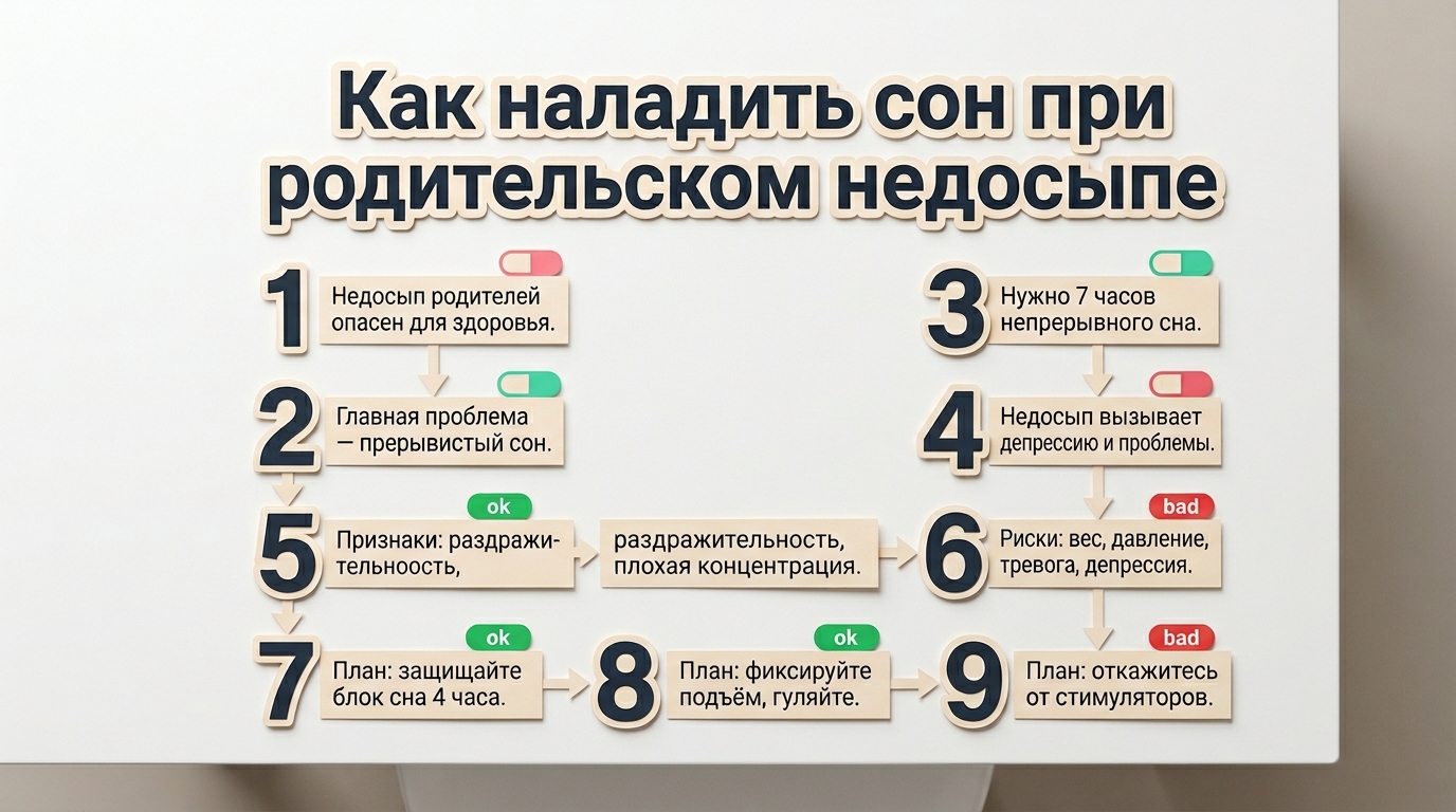 Каждый родитель знает это чувство: только голова коснулась подушки, глаза закрылись — и тут же раздаётся детский плач. О полноценном сне можно забыть на долгие часы. Мы привыкли думать, что недосып — это неизбежная часть родительства, плата за счастье материнства и отцовства. Однако хроническая нехватка сна гораздо опаснее, чем кажется на первый взгляд.
