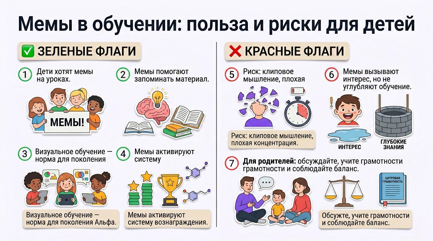 Использование мемов в образовании — это сложный вопрос, который требует взвешенного подхода. С одной стороны, это может сделать учёбу интереснее для современных детей и помочь им лучше воспринимать информацию. С другой — важно не потерять глубину знаний и способность к длительной концентрации.
