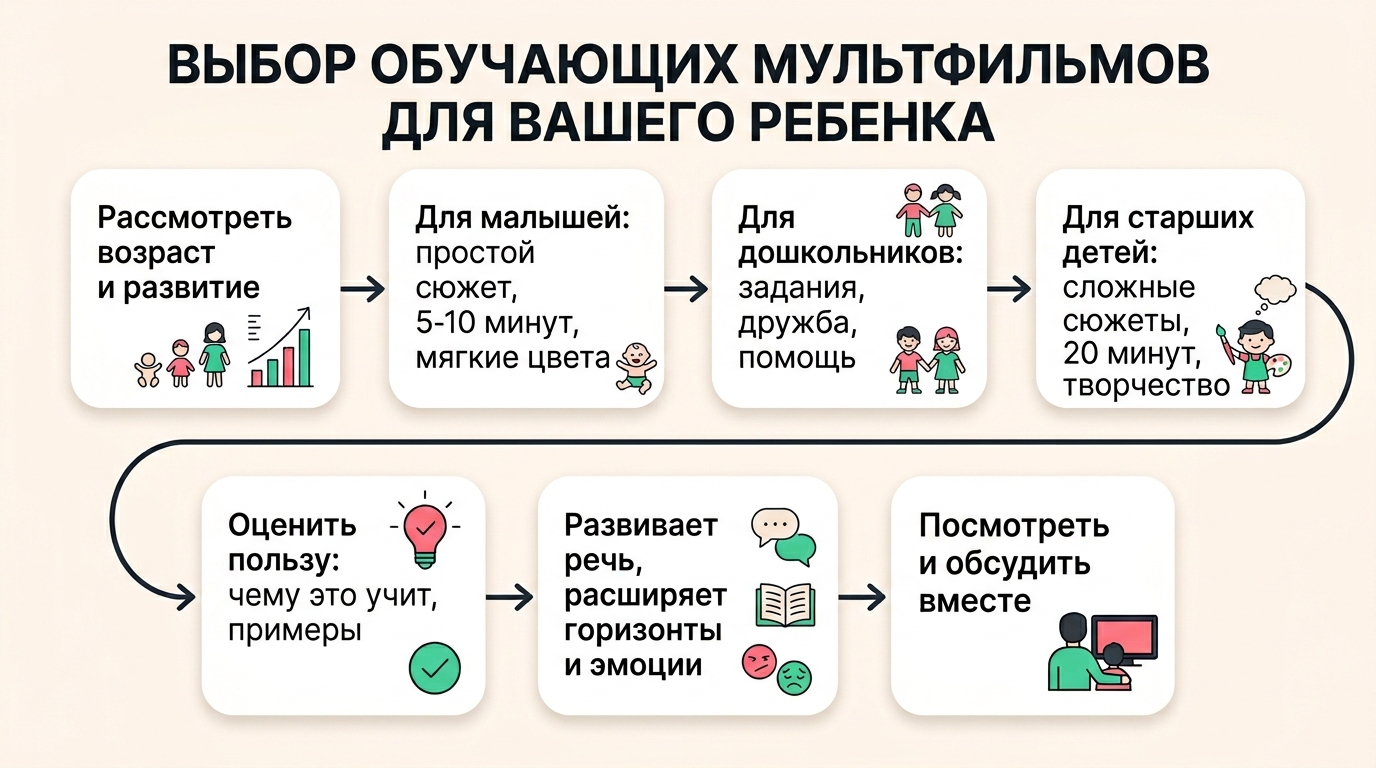 Первое и самое важное правило при выборе любого мультфильма — это соответствие возрасту и уровню развития вашего ребёнка. То, что идеально подходит двухлетке, может быть скучным для пятилетки или, наоборот, слишком сложным для малыша.