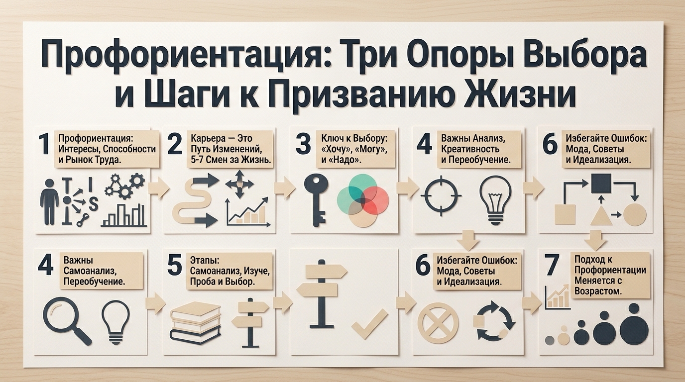 Выбор профессии — это не конечная точка, а непрерывный процесс самопознания и адаптации. Важно помнить, что ошибки — это часть пути, а не провал. Самое главное — прислушиваться к себе, пробовать новое и не бояться менять направление, ведь современный мир даёт для этого все возможности. А что вы думаете о профориентации: стоит ли начинать её с раннего детства?