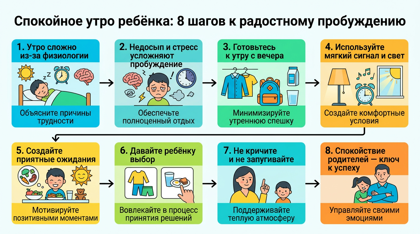 Последовательность, терпение и ваше спокойствие — главные союзники в этом процессе. Помните, что каждое утро — это новая возможность начать день с улыбки и объятий.