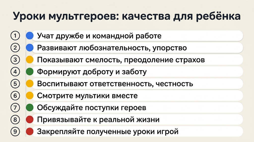Мультгерои — это яркие и понятные детям модели поведения. Наша задача как родителей — помочь увидеть за захватывающим сюжетом те самые «суперсилы» характера: доброту, смелость, ум и упорство. Учитесь у мультиков вместе, и эти уроки останутся с вашим ребёнком надолго.