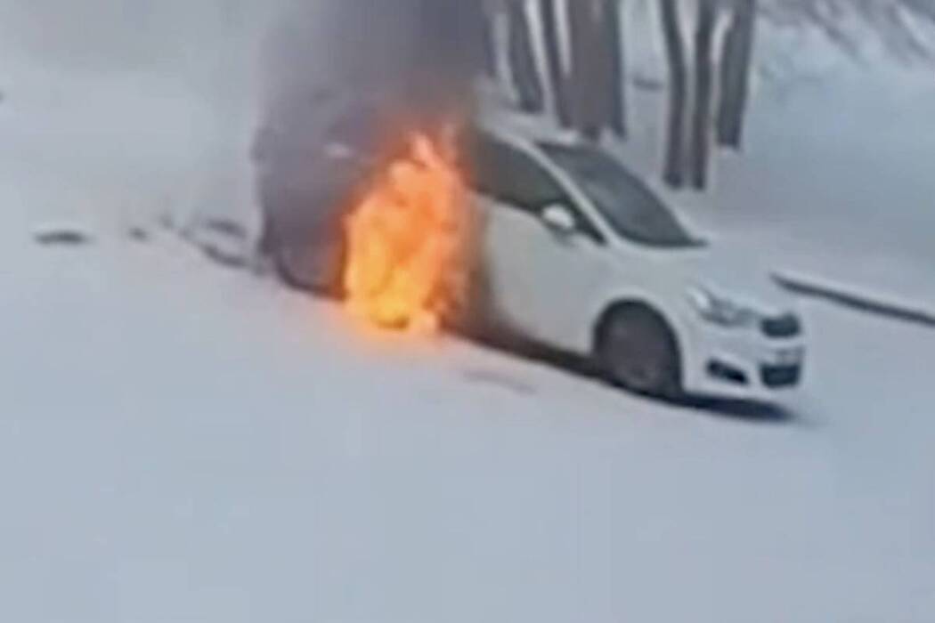 В Иркутске мужчина вытащил ребёнка из машины, охваченной огнём. Инцидент попал на видео, которое опубликовал Telegram-канал Babr Mash.