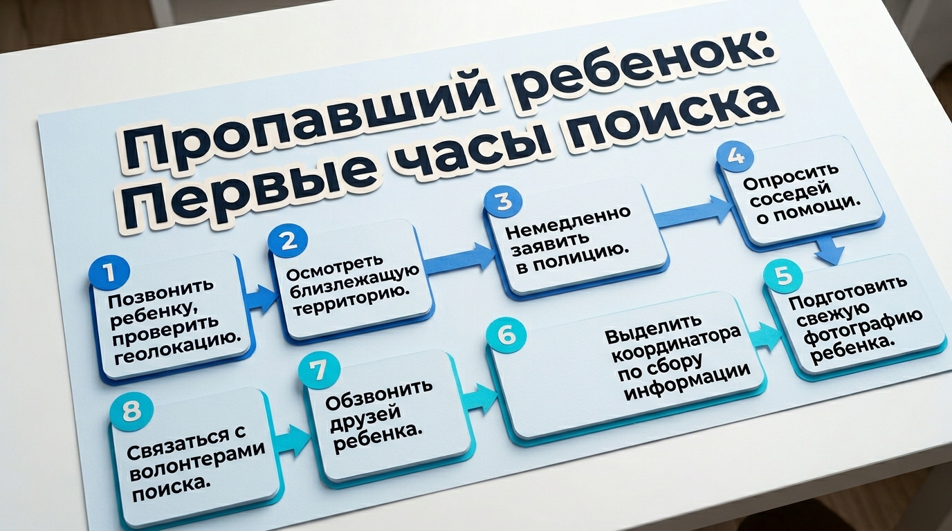 Ежегодно тысячи детей пропадают по всей стране, и каждая такая история требует немедленной реакции. Мы собрали основные рекомендации, которые помогут вам сориентироваться в первые минуты и часы поиска.