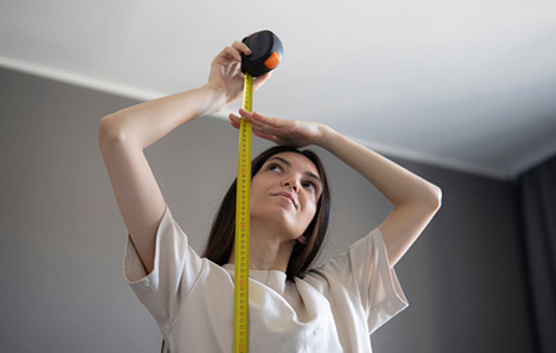 Дома тоже можно измерить рост. Для этого обычно используют дверную коробку или ровную стену. Ещё нужна тонкая книжка или угольник, а также рулетка или измерительная лента. Человек встаёт спиной к стене без обуви, выровняв осанку. Книжку или угольник плотно прижимают к макушке. Делают отметку на стене. Затем расстояние от пола до метки измеряют рулеткой. Ошибка в таком измерении обычно не превышает 0,5–1 см.