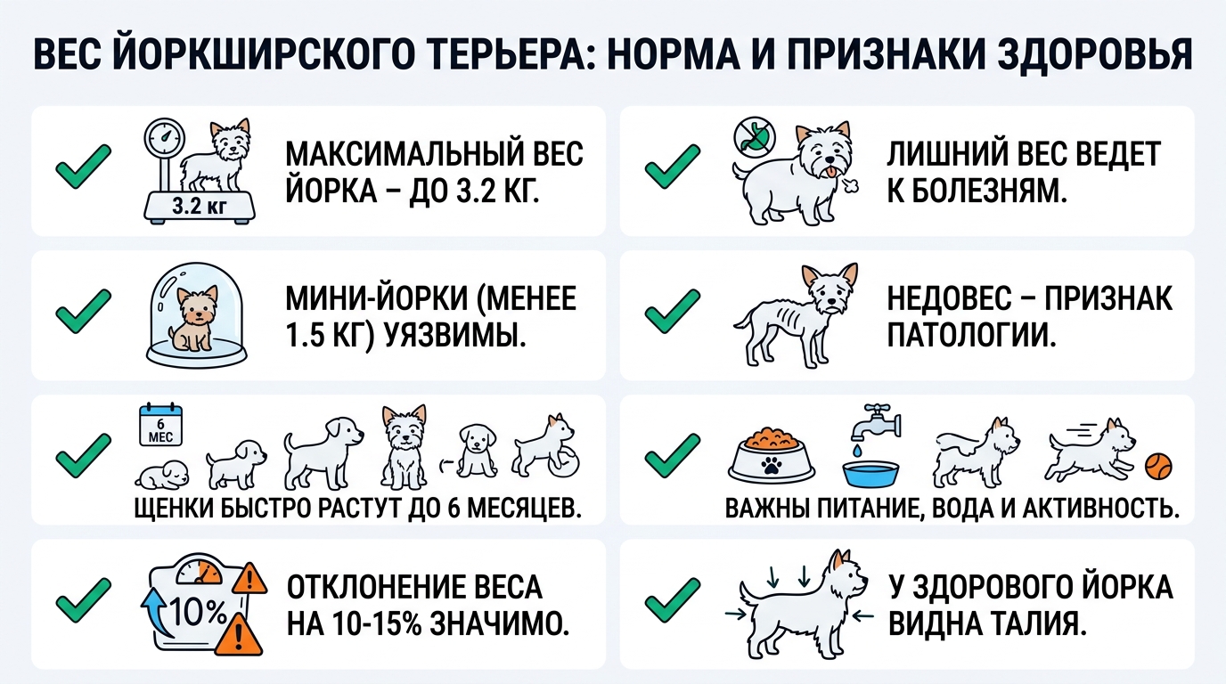 Контролировать вес йорка важно на протяжении всей его жизни. Отклонения от нормы могут сигнализировать о проблемах со здоровьем, влияя не только на внешний вид, но и на работу всего организма питомца.